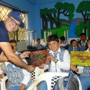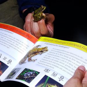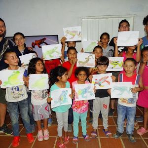 Key actions are to assess and monitor the population dynamics and threats to endemic species of harlequin toads, and to design and develop conservation strategies with local communities. In 2024, ICFC’s partner Fundación Atelopus conducted expeditions in San Pedro de la Sierra (4) and the indigenous community of Sogrome (4), to collect demographic data on the Santa Marta harlequin toad and the Starry Night toad. A total of 132 individuals of the Santa Marta harlequin toad were recorded in San Pedro and 115 individuals of the Starry Night toad were recorded in Sogrome. The data and subsequent analysis showed that the populations are stable, with high survival rates among individuals. However, low recruitment rates were also observed, indicating that few individuals are reproducing and/or joining the populations. In addition, the presence of the Bd fungus was recorded for the first time in three specimens of the Starry Night toad. Genetic analyses also revealed extreme inbreeding in both populations, with very low effective population sizes. All in all, the equilibrium of these Atelopus populations in the SNSM can be considered ‘fragile’, as a single natural or stochastic / anthropogenic event could severely impact the populations. Lastly, these expeditions have facilitated deeper collaboration with rural and Indigenous communities, including: the establishment of a community ecological monitoring group involving youth; organization of ‘bioblitz’ to quickly survey the native species of the SNSM and to promote community participation through environmental education; and, installation of camera traps to document the presence/absence of wildlife in areas adjacent to restoration (agroforestry) patches in farms around the town of San Pedro de la Sierra.