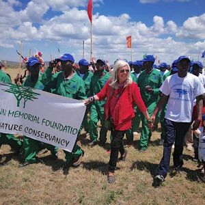 Below: Kuki Gallmann at Laikipia Highland Games, 2018. Italian born Kuki Gallmann has dedicated her life to transforming Ol Ari Nyiro from a degraded cattle ranch to its natural state after the tragic deaths of her husband and young son. It is now Kenya’s largest private reserve and an important sanctuary for wildlife. Her memoir, I Dreamed of Africa, brought her international recognition and has given her a platform to speak against elephant poaching and in support of conserving natural ecosystems. Her daughter Sveva and Sveva’s husband Nigel Croft Adams are carrying on the work of the Conservancy
