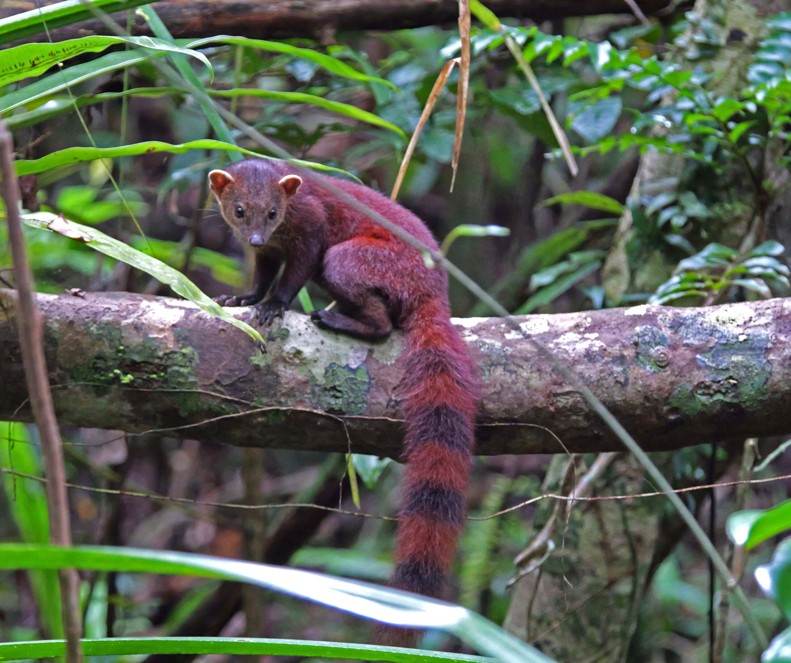 The Farankaraina Forest, located on Antongil Bay in NE Madagascar, comprises 3,000 ha (including ~1,000 ha of primary rainforest) and extends inland from the ocean to an interior elevation of 410 MASL. The forest is situated within proximity to Makira Natural Park (the largest protected area in Madagascar) and Masoala National Park (the largest National Park of Madagascar). It is estimated that the Antongil Bay area contains 50% of Madagascar’s biodiversity while covering only 2% of its surface area. The region is also home to the highest diversity of Madagascar’s emblematic lemur species and more than half of all the known endemic species in the island, including the Endangered aye-aye and the Critically Endangered red-ruffed lemur.