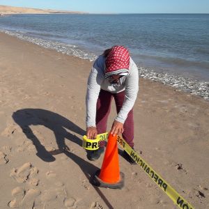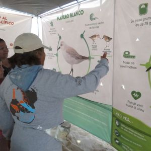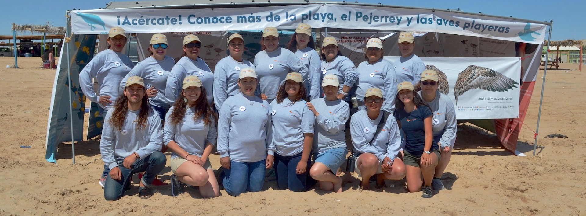 Since 2020, ICFC has supported a group that began in 2018 when Pronatura Noroeste organized and trained a group of local women to begin an outreach campaign on shorebirds and their conservation needs. This enthusiastic group was self-named Las Pejerreinas or “Grunion Queens”. Their campaign was launched during the 2019 Holy Week. The Pejerreinas set up a large white tent with interpretive displays; they wore light blue t-shirts to be identified easily on the beach-front as the guardians of the birds and grunions and they patrolled 17 kilometers of beach (demarcated with with orange highway cones and yellow tape). The campaign interacted with 32,000 beach-goers and the mostly unregulated activities. About 2,000 people were asked thier opinion about the fence, and 85% approved and said they wouldn’t mind if the area were larger. The aim of these dedicated women is to reduce the annual impacts and disturbance and to foster achange in attitudes toward shorebird conservation. Based upon their interviews and questionnaires these, now annual, campaigns have been highly successful.