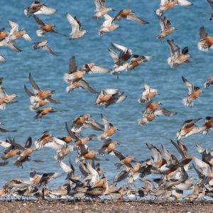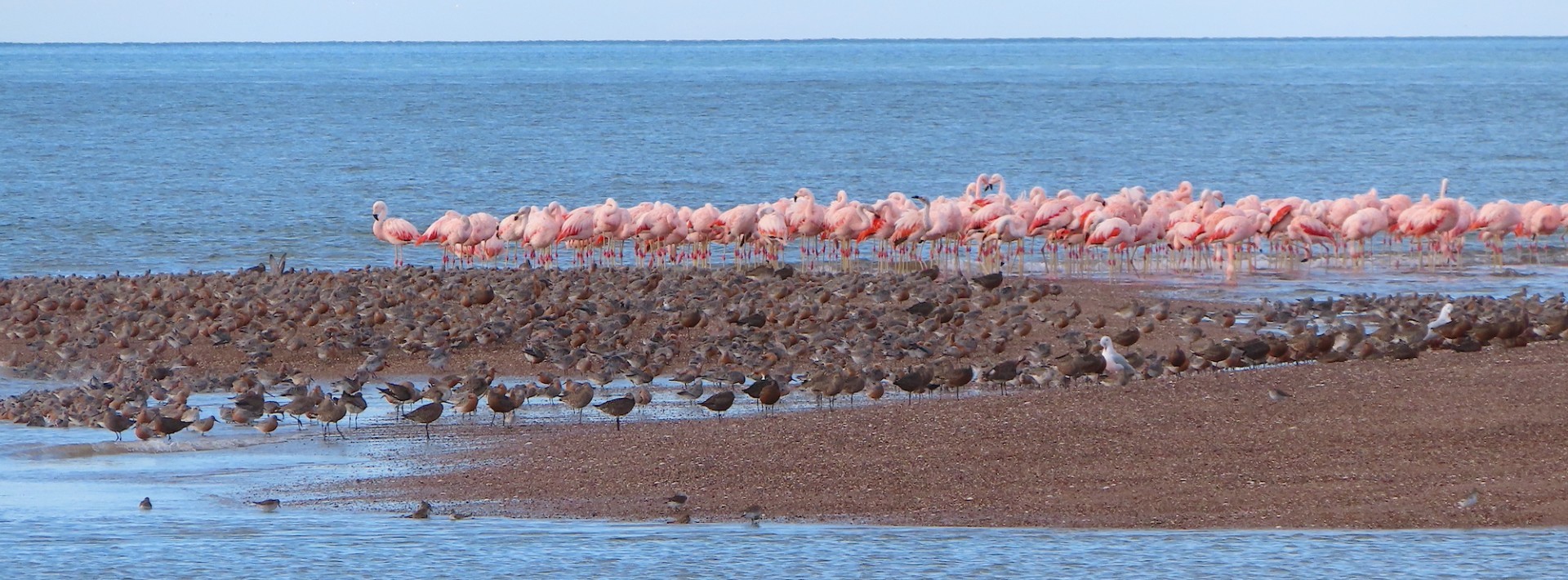 Bahía de San Antonio, a coastal marine protected area administered by the province of Rio Negro, represents a key stopover area for shorebirds migrating between Tierra del Fuego and Canada. More than 100,000 shorebirds used this site in the 1990s, including 40,000 Red Knots (Calidris canutus). In recent years, fewer knots (<3,000) have been observed there, reflecting the dramatic declines that have been recorded for the species, but this represents 25-50% of the Tierra del Fuego population (Baker, Gonzalez, Morrison, & Harrington, 2013). The current norm is about 20,000 shorebirds.