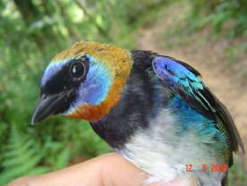 Crimson-collared Tanager, Ecological valueThe Sierra Caral Mountain Range is an important element of the Motagua River watershed. It provides the headwaters for three small rivers, and is crossed by four major rivers that originate in Honduras: Cacao, Animas, Chiquito and Bobos. Forested slopes safeguard water quality and quantity for human consumption and agriculture, provide protection from erosion, landslides, crop damage, and flooding, and prevent sedimentation in the floodplain and Gulf of Honduras. The broader Sierra Caral area in which the reserve is located is an important gene bank for several commercial tree species, and is a source of various timber and non-timber forest products used by local communities. The high-elevation forests also provide shade for shade coffee plantations near the Negro Norte sector. The Sierra Caral is vital to maintain the regional connectivity of key biological corridors at the regional scale. It is a crucial component of the Mesoamerican Biological Corridor (also referred to as Paseo Pantera), as well as the Caribbean Biological Corridor of Guatemala. It is located within a network of other protected areas: Esp ritu Santo to the south, Punta de Manabique to the north, Montaña Chiclera to the west, and Cerro San Gil to the northwest.