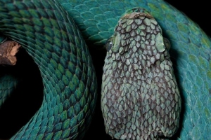 The Blue Pitviper (Bothriechis thalassinus) is a rare arboreal species only recently discovered and endemic to the Sierra Caral area